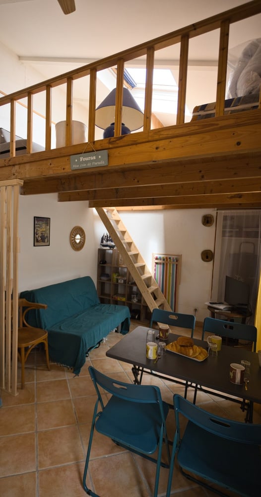 Envie d’un séjour à quelques pas de la plage, dans une maisonnette pleine de charme ? Le Refuge de la Fée vous ouvre ses portes, en plein centre de Fouras. Nichée dans une petite cour calme, cette maison typiquement fourasine accueille jusqu’à 4 personnes. Vous y trouverez une chambre au rez-de-chaussée avec un lit double, ainsi qu’un couchage double dans le salon. Deux couchages supplémentaires en mezzanine sur chauffeuse sont possibles pour les enfants à l'étage. La pièce de vie, chaleureuse et fonctionnelle, donne sur une terrasse intimiste idéale pour vos petits-déjeuners ou vos apéros au soleil. Côté équipements : lave-vaisselle, micro-ondes, cafetière, TV, ventilateur au plafond, et tout le nécessaire pour un séjour en toute autonomie. Draps et serviettes sont inclus, comme à l’hôtel. Idéal pour un couple ou une petite famille, vous profitez ici d’un cadre authentique, à seulement 4 minutes à pied de la mer.